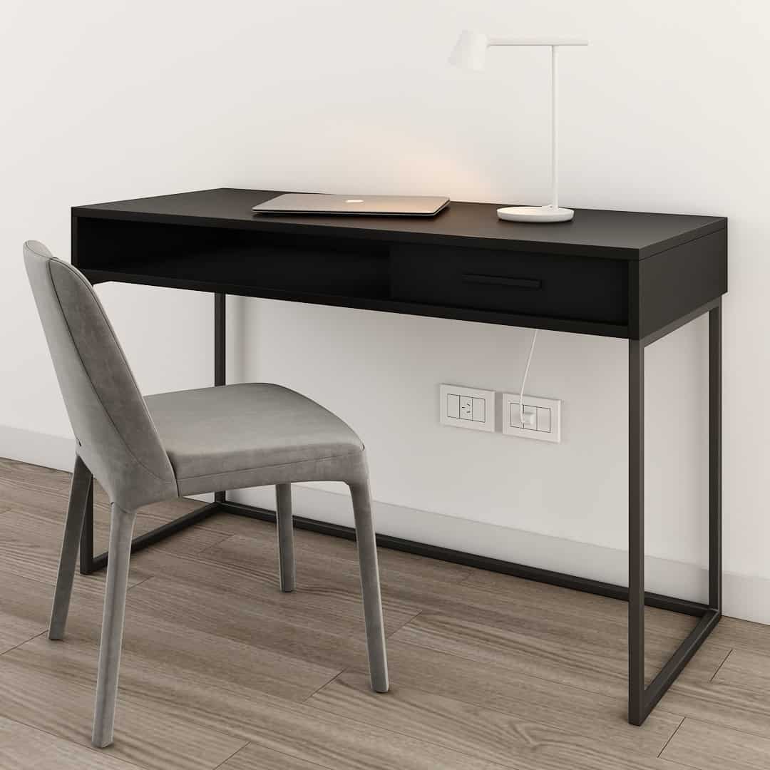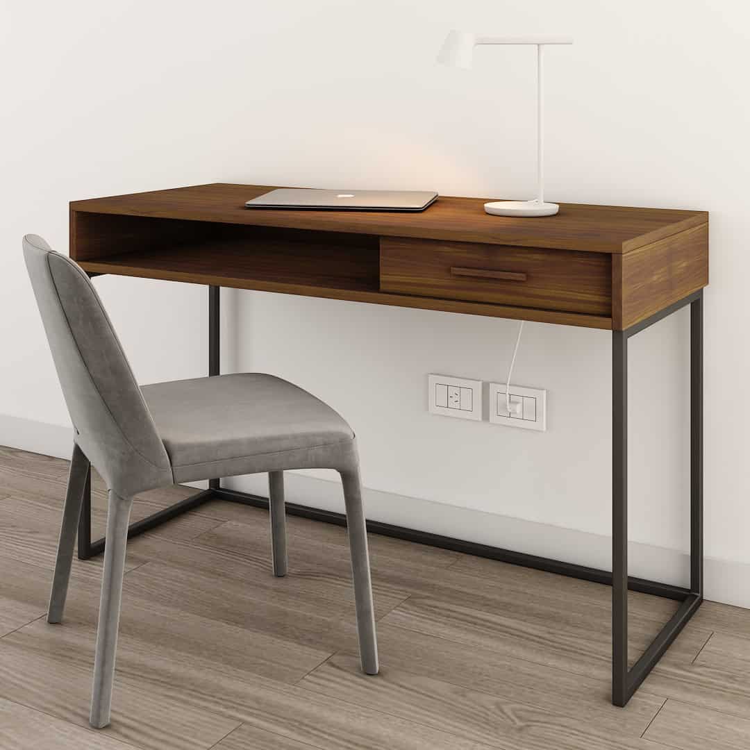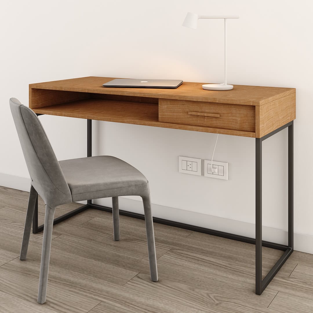 El Escritorio Creed combina orden y diseño en una estructura liviana y funcional, perfecta para espacios modernos y prácticos. Está formado por un módulo contenedor en madera enchapada o laca premium, apoyado sobre una base metálica de caño 20×20 pintada a tono, lo que le da estabilidad sin perder ligereza visual.