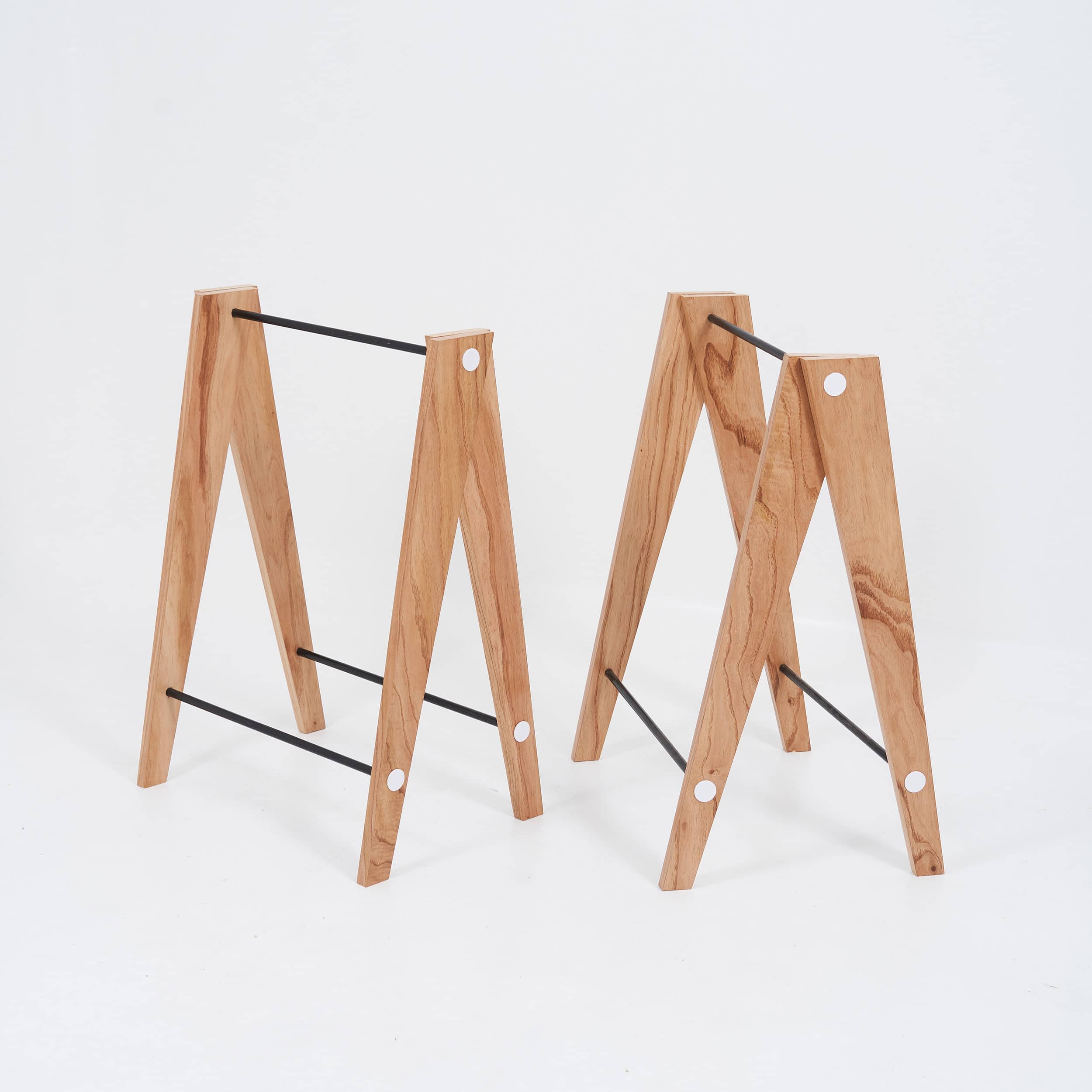 Caballetes: Fabricado con patas en fenólico enchapado en Paraíso, Lustre semi-mate.